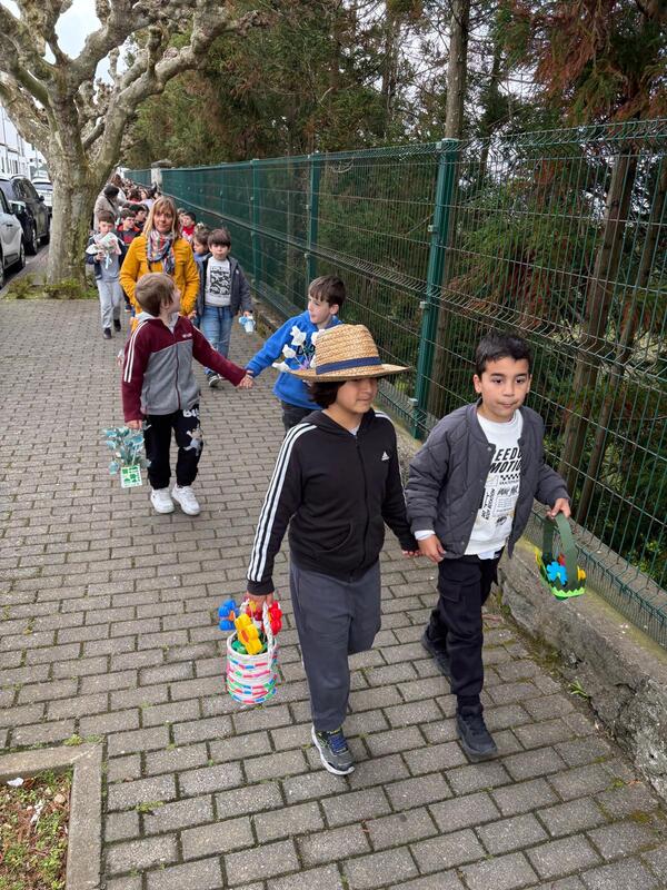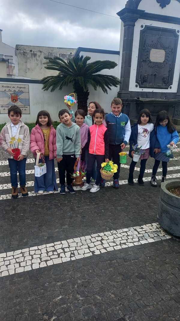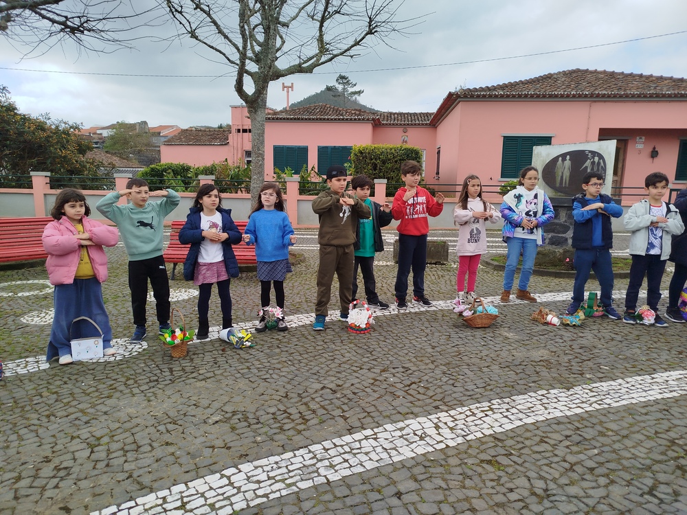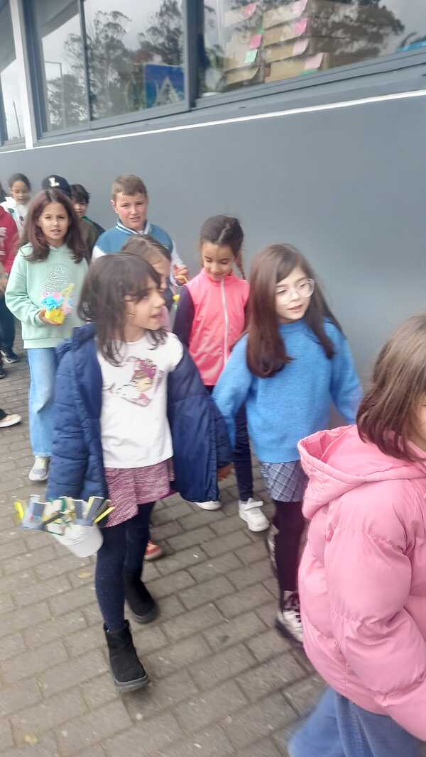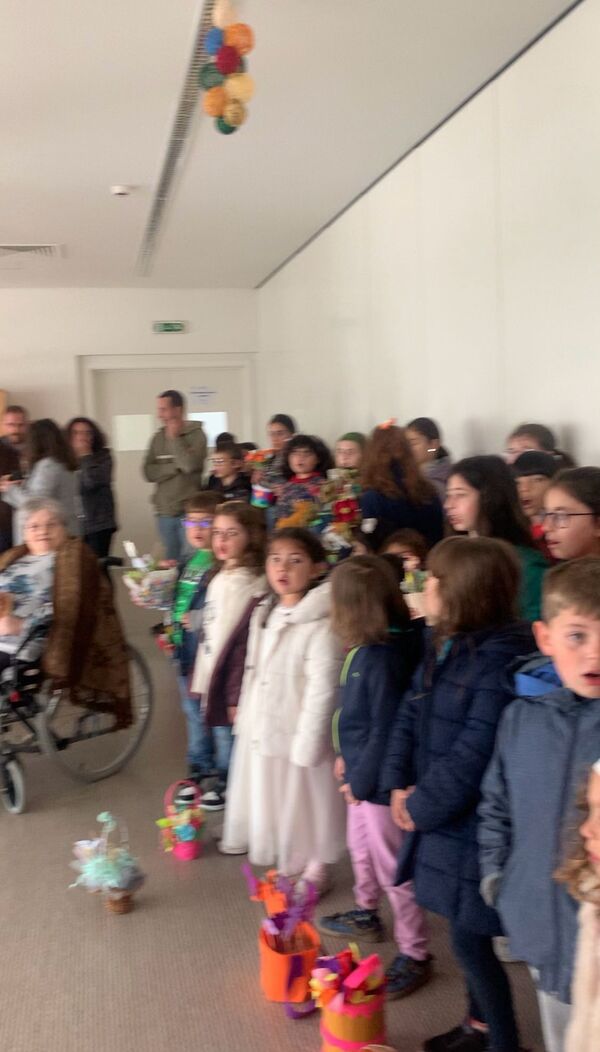 No dia 11 de abril, a escola saiu à rua! Os meninos e meninas desfilaram até à Largo do Trabalhador empunhando as suas vistosas cestas primaveris, entoando melódicas canções e espalhando alegria a todos aqueles com quem se cruzaram no caminho. Foram muitos os familiares e amigos que se deslocaram propositadamente para assistir à passagem das crianças e com elas fazer a festa. No percurso de regresso, os alunos passaram pelo Lar Manuel D’Almeida Moniz, partilhando sorrisos, acenos e gestos de carinho com os idosos que já aguardavam animadamente a passagem das crianças e da sua vivacidade. As duas turmas do quarto ano e uma turma do Pré-Escolar tiveram um contacto de maior proximidade com os residentes, já que os presentearam com um folar, flores por eles elaboradas e com uma atuação musical que iluminou os rostos e aqueceu os corações de quem ouviu e de quem cantou, um momento que certamente lhes ficará guardado na memória.